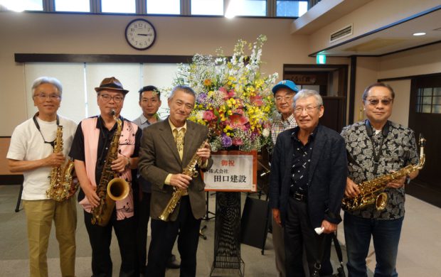 (株)田口建設会長ご夫妻からご紹介いただき【中山道鵜沼宿羽場チャレンジャーズ】様に演奏会をしていただきました。ギターやサックス、ベースの生音で昭和歌謡を楽しむことができました。懐かしい曲を口ずさむ方や手拍子をしながら体を動かし楽しむ方もみえました。