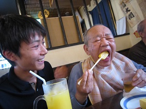 焼き鳥、枝豆、卵焼きなど、たくさん食べて飲んで楽しい時間を一緒に過ごしました。